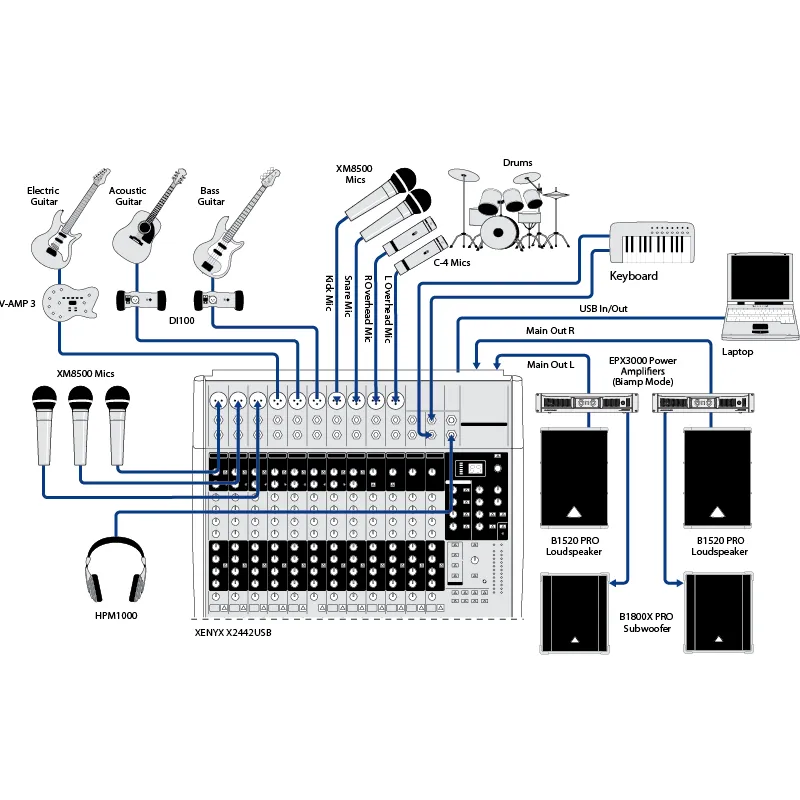 Предусилители XENYX с полосой пропускания от 10 Hz до 200 kHz. Канал эквалайзера основан на схеме British EQ пультов 60-70х, позволяющий наполнять сигнал невероятной теплотой и детализировать музыкальный характер. Благодаря встроенному реверсивному стерео USB аудио интерфейсу, можно подключать к Мас или PC через отдельный USB кабель. Теперь любой источник можно подключить в микшер и записывать напрямую на хард диск.