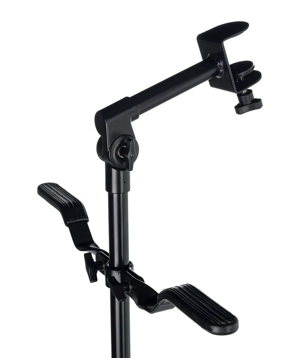 Складная, регулируемая стойка под бонго. Два регулятора высоты. Высота стойки от пола до верхнего крепления 80 см. Регулирировка угла наклона. Пластиковые накладки на ножках и площадках под инструмент. Прочная, надежная металлическая конструкция.